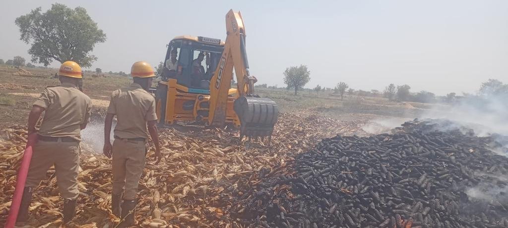 ಸುಮಾರು ಇಪ್ಪತ್ತೈದು ಎಕರೆ ಕೃಷಿ ಭೂಮಿಯಲ್ಲಿ ಬೆಳೆದಿದ್ದ ಮೆಕ್ಕೆಜೋಳದ ಬೆಳೆ ಆಕಸ್ಮಿಕವಾಗಿ ಕಾಣಿಸಿಕೊಂಡ ಬೆಂಕಿಯಿಂದ ಸಂಪೂರ್ಣವಾಗಿ ನಾಶವಾಗಿದೆ.