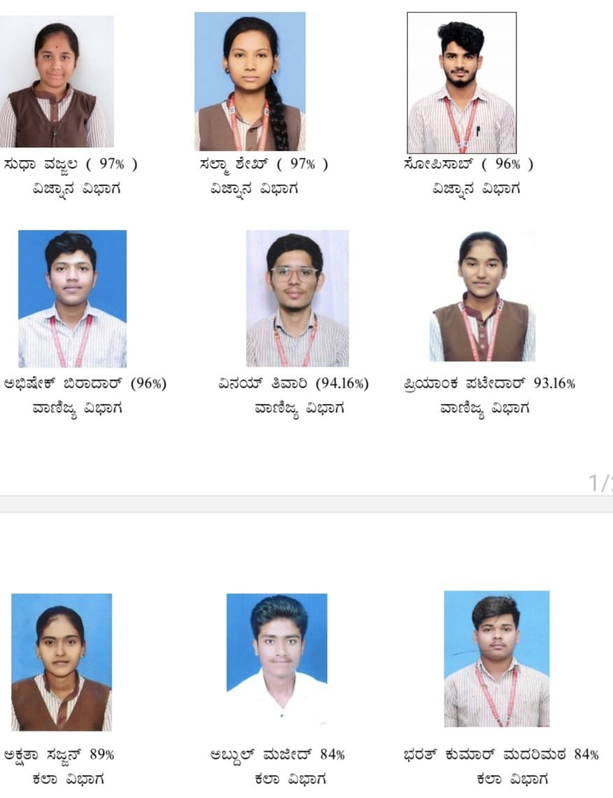 ಕಲಾ ವಿಭಾಗದಲ್ಲಿ ಅಕ್ಷತಾ ಸಜ್ಜನ 89 % ಅಂಕಗಳೊಂದಿಗೆ ಪ್ರಥಮ ಸ್ಥಾನ ಪಡೆದಿದ್ದಾರೆ.ಅಬ್ದುಲ್ ಮಜೀದ್ 84% ಅಂಕಗಳೊಂದಿಗೆ ದ್ವಿತೀಯ ಸ್ಥಾನ ಪಡೆದರೆ, ಭರತಕುಮಾರ ಮದರಿಮಠ 84% ಅಂಕಗಳೊಂದಿಗೆ ತೃತೀಯ ಸ್ಥಾನ ಪಡೆದಿದ್ದಾರೆ.