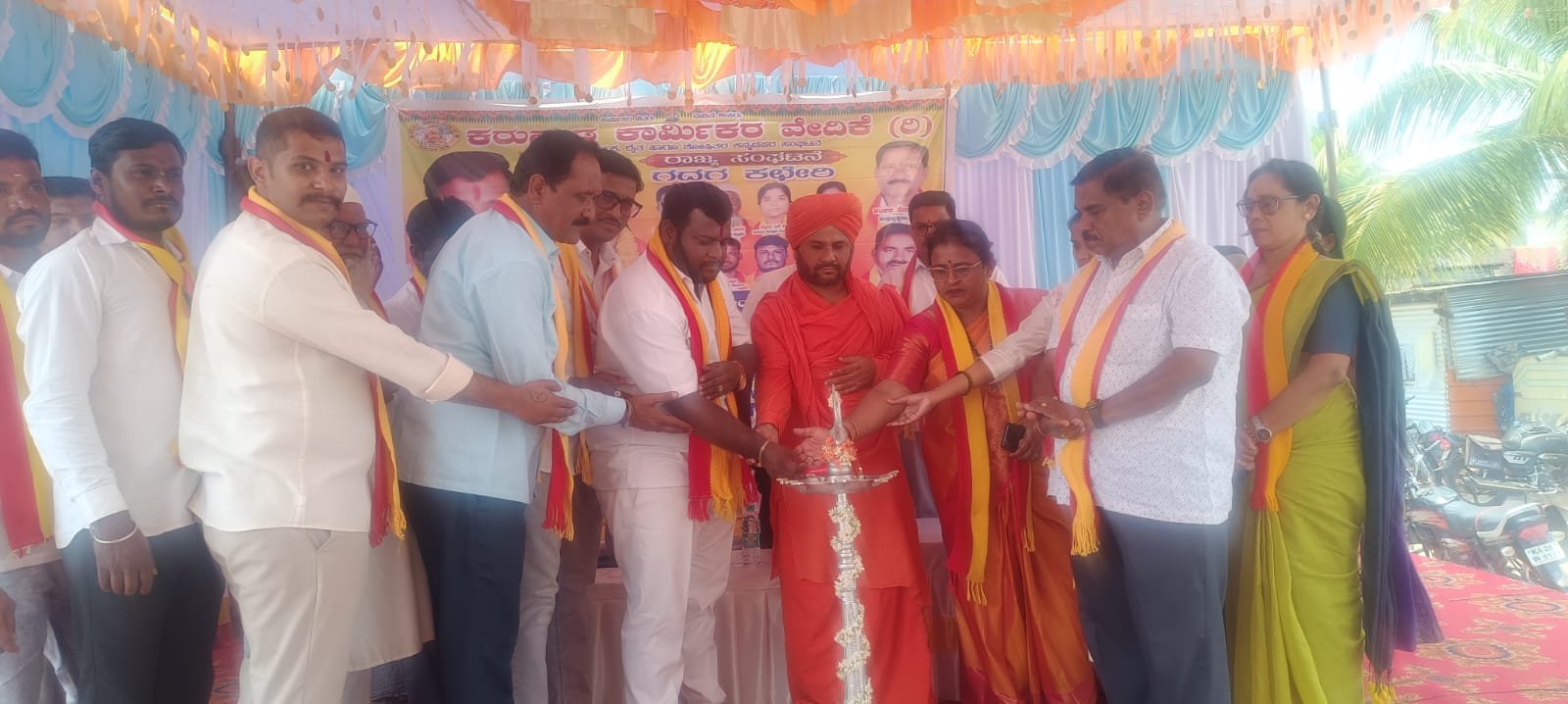 ಪಟ್ಟಣದ ಶ್ರೀ ಸಿದ್ಧರಾಮೇಶ್ವರ ನಗರದಲ್ಲಿ ಶನಿವಾರ ಕರುನಾಡ ಕಾರ್ಮಿಕರ ವೇದಿಕೆ ವತಿಯಿಂದ ನೂತನ ಕಛೇರಿ ಕಟ್ಟಡ ಉದ್ಘಾಟನೆ ಕಾರ್ಯಕ್ರಮದಲ್ಲಿ ಮಾತನಾಡಿರು