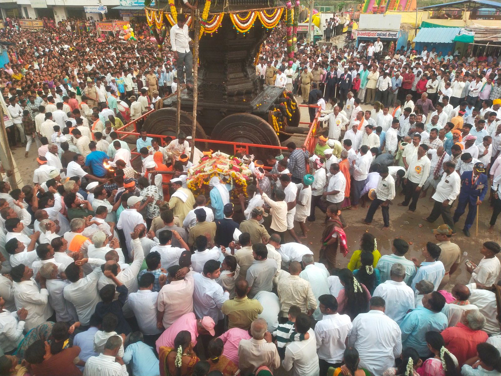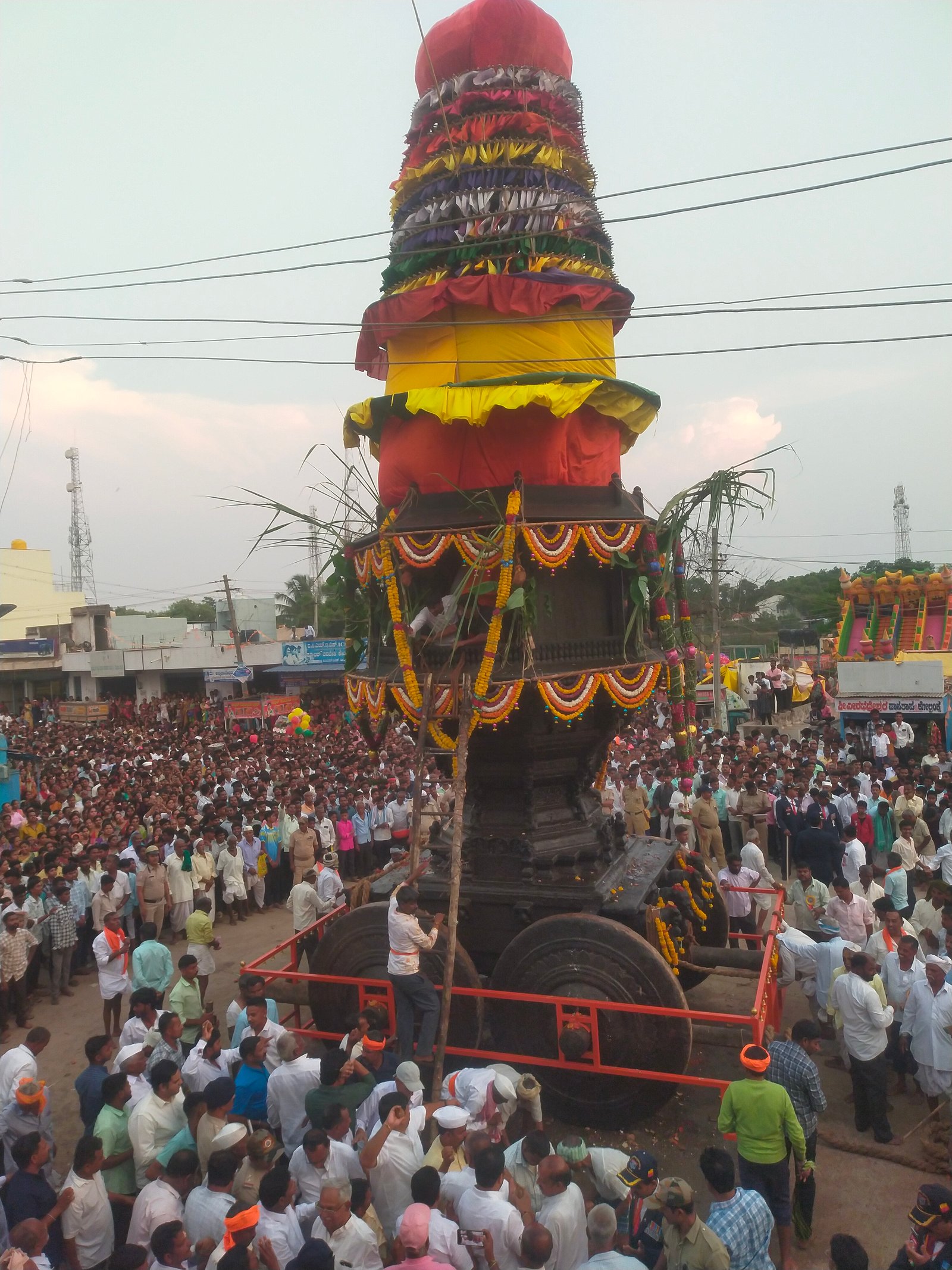 ವೀರಗಾಸೆ ಕುಣಿತ, ಪೂಜಾ ಕುಣಿತ, ಜಗ್ಗಲಗಿ ಮೇಳ ಮತ್ತು ಕರಡಿ ಮೇಳಗಳು ರಥೋತ್ಸವದ ರಂಗನ್ನು ಹೆಚ್ಚಿಸಿದವು,ಮಂಗಳ ವಾದ್ಯ, ನಾದಸ್ವರ ಮತ್ತು ವೀರಗಾಸೆಯ ಸಮ್ಮಾಳು ಸಂಗೀತ ಸಾಧನಗಳು ರಥೋತ್ಸವಕ್ಕೆ ಶ್ರದ್ಧಾಭಕ್ತಿಯನ್ನು ಹೆಚ್ಚಿಸಿದವು ಹಸಿರು ಸೀರೆ ಮತ್ತು ಕುಪ್ಪಸ ಧರಿಸಿದ ಮಹಿಳೆಯರು ಆರತಿ ಬೆಳಗುವುದು, ಅಲಂಕೃತ ರಥ ಮತ್ತು ದೇವರ ಮೂರ್ತಿಯ ಭವ್ಯ ಅಲಂಕಾರವು ಪ್ರಮುಖ ಆಕರ್ಷಣೆಯಾಗಿತ್ತು.ಲಕ್ಷಾಂತರ ಭಕ್ತರ ಪಾಲ್ಗೊಳ್ಳುವಿಕೆ ಮತ್ತು ಅವರ ಭಕ್ತಿಭಾವವು ರಥೋತ್ಸವಕ್ಕೆ ನಿಜವಾದ ಮೆರುಗು ತಂದಿತ್ತು.ಮಧ್ಯಾಹ್ನ ೧೨ ಗಂಟೆ ಸುಮಾರಿಗೆ ಅನ್ನ ಸಂತರ್ಪಣೆಗೆ ಚಾಲನೆ ನೀಡಲಾಯಿತು. ಸಂಜೆ ವರೆಗೆ ಸಾವಿರಾರು ಜನ ಪ್ರಸಾದ ಸ್ವೀಕರಿಸಿದರು.