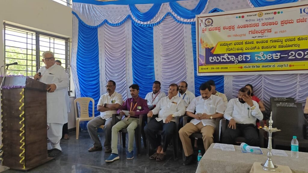 ಅವರು ಶನಿವಾರ ಗಜೇಂದ್ರಗಡ ಪಟ್ಟಣದ ಬಿ.ಎಸ್.ಎಸ್ ಸರ್ಕಾರಿ ಪ್ರಥಮ ದರ್ಜೆ ಕಾಲೇಜು ಆವರಣದಲ್ಲಿ ಉದ್ಯೋಗ ಭರವಸೆ ಕೋಶ ಮತ್ತು ಆಂತರಿಕ ಗುಣಮಟ್ಟ ಭರವಸೆ ಕೋಶ, ಎಂ.ಎನ್.ಸಿ ಕಂಪನಿಗಳ ಸಹಯೋಗದಲ್ಲಿ ಆಯೋಜಿಸಿದ್ದ ಉದ್ಯೋಗ ಮೇಳಕ್ಕೆ ಚಾಲನೆ ನೀಡಿ ಮಾತನಾಡಿದರು.ಗ್ರಾಮೀಣ ಮತ್ತು ಪಟ್ಟಣ ಪ್ರದೇಶದ ನಿರುದ್ಯೋಗಿ ಯುವಕ-ಯುವತಿಯರಿಗೆ ಉದ್ಯೋಗ ಮೇಳಗಳು ಹೆಚ್ಚು ಅನುಕೂಲಕರವಾಗಿವೆ .ಸಮಾಜದಲ್ಲಿ ಶೇ 60ರಷ್ಟು ಮಂದಿ ಉದ್ಯೋಗ ಅರಸಿ ಬರುತ್ತಿದ್ದು, ಆಧುನಿಕ ಪರಿಸ್ಥಿತಿಯಲ್ಲಿ ಸಾಕಷ್ಟು ವಿಪುಲ ಉದ್ಯೋಗಾವಕಾಶ ಕಲ್ಪಿಸಬೇಕಾಗಿದೆ. ಸ್ಪರ್ಧಾತ್ಮಕ ಯುಗದಲ್ಲಿ ಸಂಬಳದ ಬಗ್ಗೆ ಚಿಂತಿಸದೆ ಉದ್ಯೋಗ ಪಡೆದು ಅನುಭವ ಹೆಚ್ಚಿಸಿಕೊಳ್ಳಬೇಕಾದ ಅವಶ್ಯಕತೆಯಿದೆ ಎಂದರು.